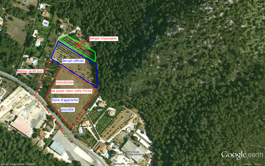 - Soit on pose coté Gémenos sur le terrain officiel « autorisé »