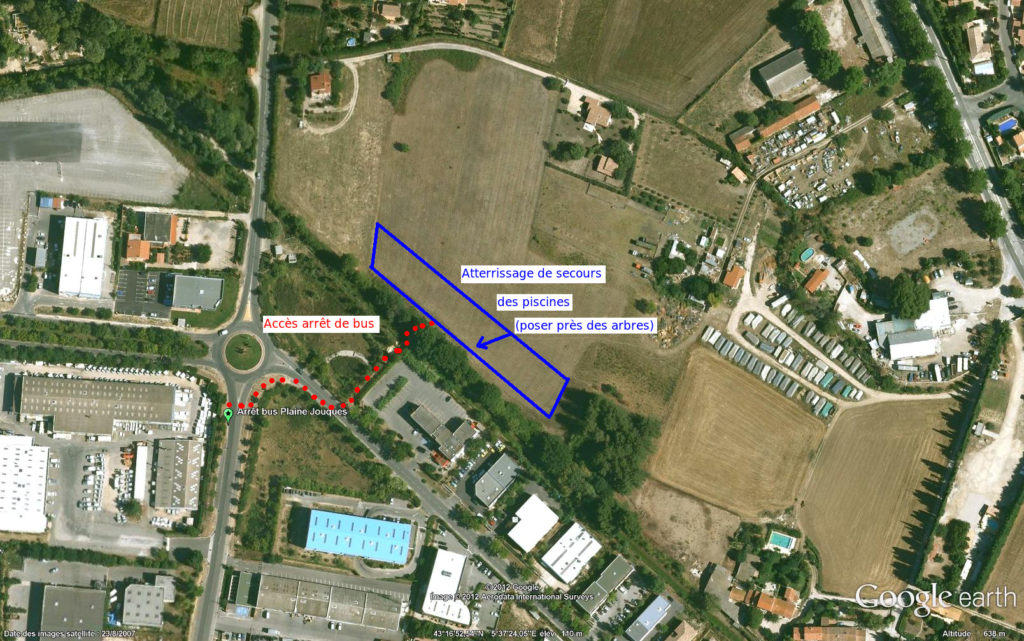 Un autre terrain dit « des Piscines » a été négocié et autorisé, mais il n’est à utiliser que de façon occasionnelle, pas question d’y poser par paquets de vingt, le proprio ne l’accepte qu’à titre exceptionnel, comme atterro de secours, okazou certains auraient des envies de cross en direction du Garlaban …