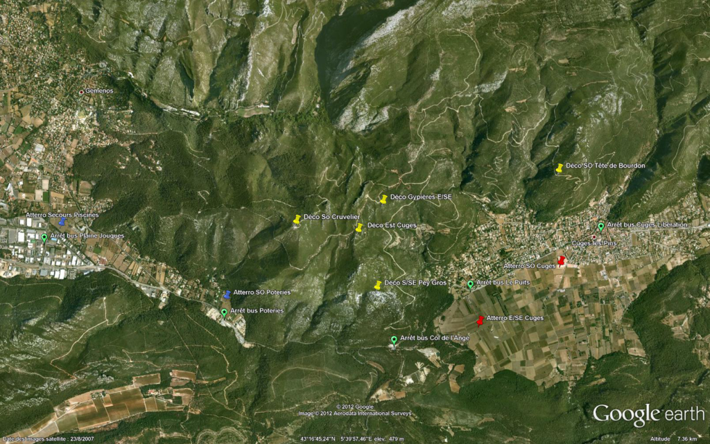 Dans le temps il avait fait un cross Cruvelier / Garlaban / Hôtel du Département (CG 13) / avec atterro sur le terrain de foot de Plan de Cuques …. Énorme !!! .
