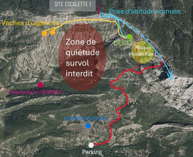 Le décollage de L’Escalette se situe dans une future réserve naturelle nationale à proximité d’un nid d’une espèce de rapaces menacée faisant l’objet d’un Plan National d’Action dans un site Natura 2000